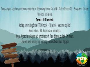 Gminne Koło PTTK Teraz Sudety zaprasza do zapisów na wrześniową wycieczkę pn. Zdobywamy Koronę Gór Polski i Diadem Polskich Gór