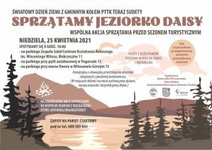 Gminne Koło PTTK Teraz Sudety zaprasza na wspólne świętowanie Światowego Dnia Ziemi oraz akcję turystyczno - ekologiczną pn: "Sprzątamy Jeziorko Daisy" w Niedzielę 25.04.2021 r
