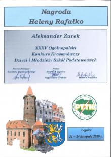 Z prawdziwą radościa donosimy, ze reprezentant naszego oddziału, ALEKSANDER ŻUREK na XXXV OGÓLNOPOLSKIM KONKURSIE KRASOMÓWCZYM DZIECI I MŁODZIEŻY SZKÓŁ PODSTAWOWYCH W LEGNICY zdobył nagrodę Heleny Rafałko. Aleksander uczęszcza do pracowni teatralnej Młodziezowego Domu Kultury pod kierunkiem Joanny Chojnowskiej.