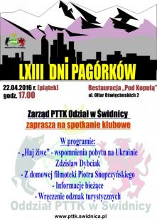 Zarząd PTTK Oddział w Świdnicy zaprasza na spotkanie klubowe
