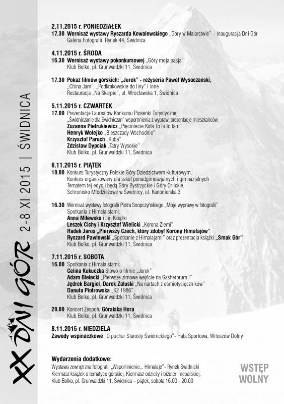 Za nami XX Dni Gór w dniach 2-8.11.2015 (szczeg. na plakacie)