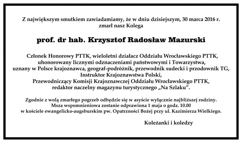 Oddział PTTK w Świdnicy > ODSZEDŁ NA WIECZNĄ WĘDRÓWKĘ....