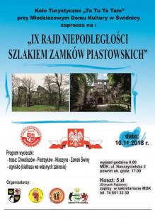Wyjazd godz. 8.00 z MDK, ul. Nauczycielska 2. Powrót ik. 17.00 Koszt ( 5 zł - znaczek rajdowy), Ubezpieczenie w ramach członkostwa w PTTK, ZAPISY sekretariat MDK tel. 74/8513330
