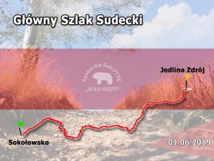 Start: Sokołowsko – Bukowiec 896 m n.p.m. – Schronisko PTTK Andrzejówka – Hala pod Klinem – Przełęcz pod Turzyną – Pod Turzyną – Przełęcz pod Jeleńcem – Skalne Bramy – Pod Rogowcem - Rybnica Mała – Przełęcz pod Wawrzyniakiem – Meta: Jedlina Zdrój, stacja kolejowa.