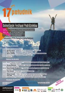 Trzy festiwalowe dni wypełni szereg atrakcji, z których jak zwykle najważniejsze będą spotkania z podróżnikami. Ze zdobywcą Kolosa (nagroda za najciekawsze dokonania podróżnicze) - Piotrem Strzeżyszem, odbędziemy pełną perypetii, rowerową wyprawę z Alaski do Patagonii. Znany już festiwalowej publiczności, młody podróżnik - Emill Witt, nominowany w tym roku w konkursie National Geographic do nagrody Travelera w kategorii "Podróż roku", zabierze nas w jedno z najbardziej budzących emocje miejsc na ziemi - do Amazońskiej Puszczy na spotkanie z Indianami Machiguenga, zamieszkującymi gęstą selvę w dorzeczu Urubamby w centralnym Peru. Monika Masaj - miłośniczka samotnych podróży i świeżo upieczona absolwentka Uniwersytetu Wrocławskiego, na którym studiowała bezpieczeństwo narodowe, opowie nam o swojej fascynacji Afganistanem, gdzie między innymi prowadziła warsztaty dla kobiet na uniwersytecie w Kabulu. Z Robertem Gondnkiem, pomysłodawcą projektu "W drodze na najwyższe szczyty Afryki", odwiedzimy Gabon i Wyspy Św. Tomasza. Z zawodowym fotografem - Anną Gondek-Grodkiewicz, która współpracowała między innymi ze znanym, polskim reżyserem Janem Jakubem Kolskim na planie kilku jego filmów, odbędziemy fotograficzną podróż na Karaiby, aby przyjrzeć się codziennemu życiu mieszkańców wysp archipelagu San Blas na pograniczu panamsko-kolumbijskim. Górzysty Tadżykistan odwiedzimy z Renatą Matusiak - wielką miłośniczką kultury państw Azji Środkowej. Piotr Horzela, zabierze nas w antarktyczne klimaty, gdzie wcześniej spędził półtora roku swojego życia. Marcin Obałek, współautor takich projektów jak "Traktoriada", w czasie której ciągnikiem Ursus przemierzał Amerykę Południową, "Z Kopyta - konno dookoła świata", czy też Polskiej Ekspedycji Amazońskiej - wyprawy archeologicznej, tym razem opowie nam o swoim udziale starym, poczciwym maluchem w właśnie co zakończonym, australijskim etapie międzynarodowej wyprawy na Antypody. Podróż była kontynuacją całkowicie zwariowanego projektu czeskiego "łowcy przygód", dziennikarza Dana Přibáňa, - "Trabantami na koniec świata". Wcześniej, pomalowana na żółto flota czeskich trabantów zdobyła już Afrykę, Azję Środkową i Amerykę Południową, a drużyna Dana Přibáňa bije w Czechach rekordy popularności. Warto wspomnieć, że prelekcja o australijskiej wyprawie "żółtej floty" będzie miała na 17 Południku swoją absolutną premierę. W ramach nocnych pokazów, uczestnicy festiwalu, będą mieli także okazję obejrzeć zrealizowany w 2014 r., i niepokazywany jeszcze w Polsce, długometrażowy film dokumentalny z południowoamerykańskiej edycji wyprawy, zatytułowany "Trabantem až na konec světa". Emitowany w 12 odcinkach w czeskiej telewizji, film ten był w ubiegłym roku jednym z najczęściej tam oglądanych.