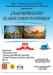 Koło PTTK "ToTuToTam" - MDK Świdnicazaprasza na Rajd Niepodległości Szlakiem Zamków Piastowskich