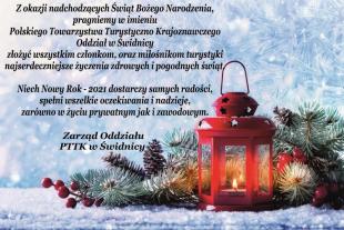 Z okazji Świąt Bożego Narodzenia,Sylwestra i Nowego Roku życzymy wszystkim członkom PTTK, przyjaciołom i sympatykom - Wam: