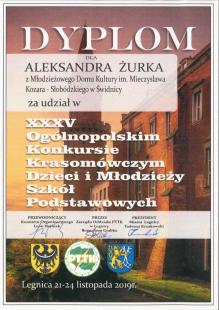 Z prawdziwą radościa donosimy, ze reprezentant naszego oddziału, ALEKSANDER ŻUREK na XXXV OGÓLNOPOLSKIM KONKURSIE KRASOMÓWCZYM DZIECI I MŁODZIEŻY SZKÓŁ PODSTAWOWYCH W LEGNICY zdobył nagrodę Heleny Rafałko. Aleksander uczęszcza do pracowni teatralnej Młodziezowego Domu Kultury pod kierunkiem Joanny Chojnowskiej.
